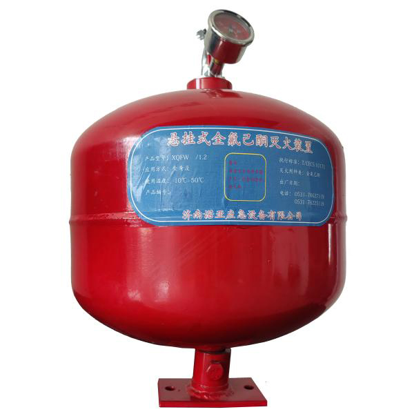 | 1 | 悬挂式全氟己酮灭火装置 | XQFW10/1.2-NY | 最大充装量1420kg/L; 贮存压力 1.2Mpa |